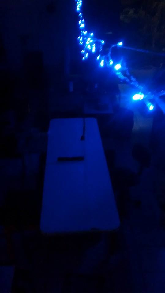 Para mó de facilitar esticamos um arame e nele pregamos com enforca-gatos o rabicho de 110v/220v que tinhamos pelo chão. De quebra ainda esticamos os leds azuizinhos e de noite fica bem dahora, um bom começo.